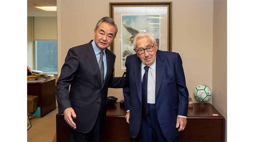 9月19日,國務委員兼外長王毅(左)在紐約會見美國前國務卿基辛格。 新華社