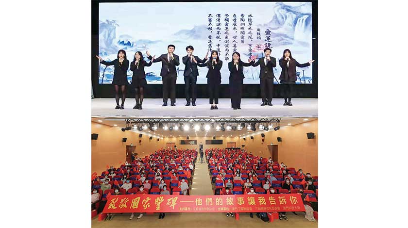 【特訊】丹桂飄香,喜迎國慶。9月23日,由江蘇省海外聯誼會指導支持,澳門江蘇聯誼會、江蘇香港文化促進會和澳門科技大學共同主辦的“致敬國家豐碑——他們的故事,讓我告訴你”國情教育活動在澳門科技大學D座禮堂舉行。來自澳門科技大學的師生,與澳門社會各界嘉賓和青年200餘人一同參加現場活動;在香港路德會西門英才中學分會場,110餘名師生視頻連線參與互動交流。