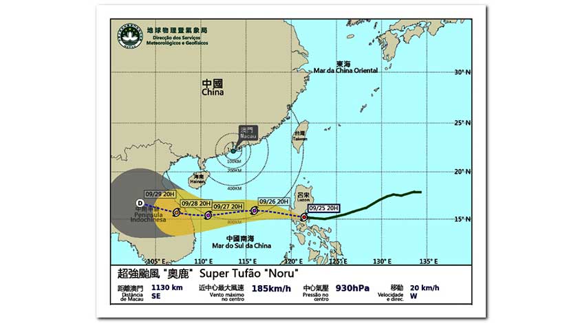 另據中央氣象台資料,昨早「奧鹿」中心位於菲律賓馬尼拉偏東方向,中心附近最大風力17級以上(62米/秒),屬超強颱風級,昨晚「奧鹿」於呂宋島登陸,期後穿過呂宋島,強度有所減弱,料於今早進入南海中部偏東海域,逐漸向越南東部沿海靠近,強度再有所加強,料將於廿八日(周三)凌晨至上午在越南東部沿海登陸。