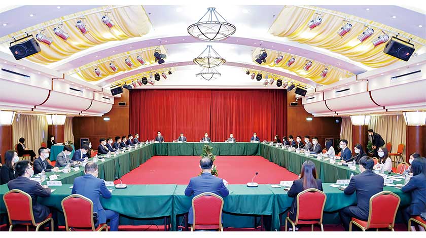 【特訊】行政長官賀一誠昨日在世貿蓮花廳會見中華全國青年聯合會副主席羅奕龍一行(見圖),就特區政府制定《2023年財政年度施政報告》聽取中華全國青聯澳區委員的意見及建議,並就愛國愛澳教育、青年在深合區發展等議題交換意見。