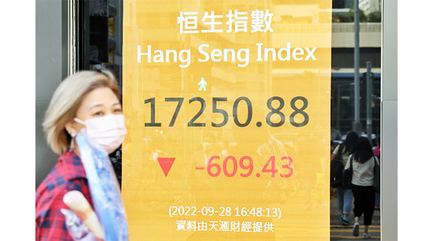 【香港中通社9月28日電】(記者張明臻)港股28日尋底跌勢再次加速,恆指收報17250點,跌609點或3.4%。大市全日成交1087億港元。