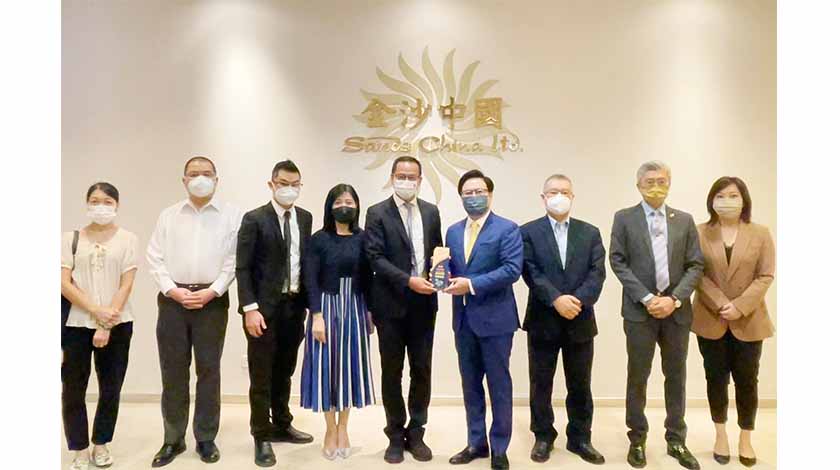 職工之家理事長李冠禧、副會長李柏樓、副理事長鄭煥萍、理事羅潤桂,介紹了該會及轄下單位在本澳遭受新冠疫情期間所進行的特別社會服務,包括設諮詢輔導熱線協助從業員處理工作、心理及防疫上的各種疑難,提供網上才藝學習活動供從業員的子女參與,及組織志願者擔任核酸站的前線職務等。接下來,為加深本澳博彩從業員對國情、區情和中華文化的認識,提升從業員對國家及澳門特區的認同感和歸屬感,將舉辦「博彩從業員國情知識問答比賽」及「博彩從業員愛國教育嘉年華」,並誠邀金沙中國給予支持,積極推動旗下僱員參與,共同彰顯博彩業界“愛國愛澳”的精神。