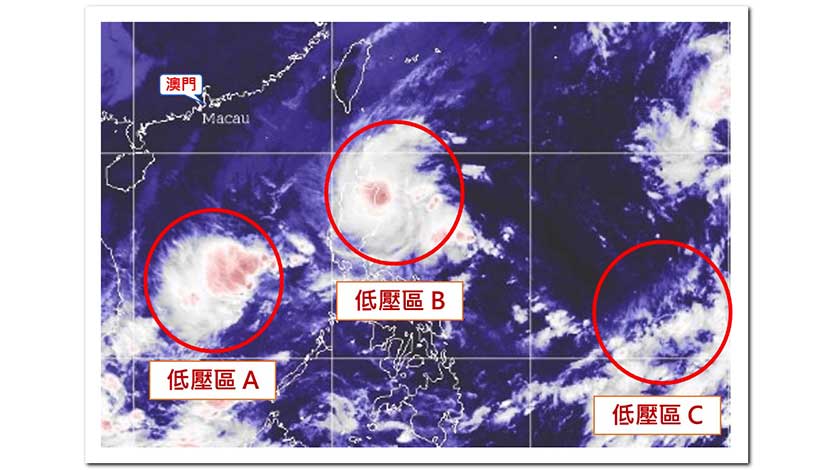 氣象局指,本澳近日受東北季風影響,周初開始一直維持秋高氣爽的天氣,但現時遠方的南海及西北太平洋海面上,卻仍然保持著夏季的氣息。由衛星雲圖所見,目前位於南海中部、菲律賓呂宋島東北方及西北太平洋海面上,分別有三個低壓區正在發展。