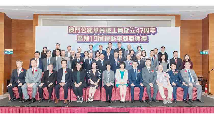 【特訊】澳門公務華員職工會(公務工會)日前舉辦第四十七週年會慶暨第十九屆理監事就職典禮,行政法務司司長代表、行政公職局代局長馮若儀,中聯辦社工部副部長朱宏,澳門工會聯合總會會長何雪卿,澳區全國政協委員、澳門工會聯合總會監事長陳錦鳴,立法會議員李靜儀、李振宇以及近十五個公務員團體代表出席。席間由公務工會會長張國然帶領一眾理監事進行宣誓,並由馮若儀代局長、何雪卿會長監誓。