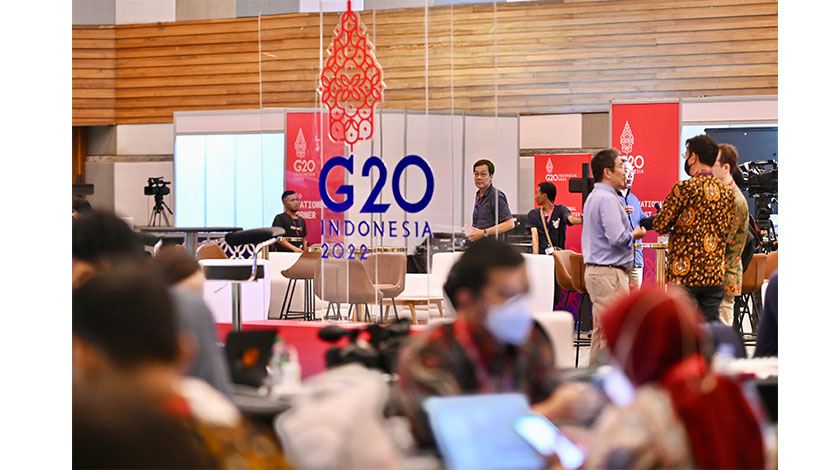 11月13日,媒體工作者在巴厘島的峰會媒體中心工作。二十國集團(G20)領導人第十七次峰會將於11月15日至16日在印尼巴厘島舉行。媒體工作者已進駐巴厘島的媒體中心,為報道做好準備。 中新社