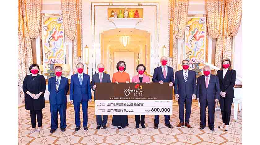 捐贈儀式日前於永利皇宮舉行。永利渡假村(澳門)股份有限公司總裁兼常務董事、永利澳門有限公司副主席兼執行董事陳志玲、永利澳門有限公司營運總裁兼執行董事羅偉信、永利澳門及永利皇宮推廣傳訊高級副總裁廖曉齡、永利澳門及永利皇宮社區及政府關係助理副總裁張詩敏,代表永利將善款支票交予澳門日報讀者公益基金會,並由該基金會會長賀定一、副會長陸波、飛安達、理事長黃國勝、常務副理事長何榮祥及副理事長許建章代表接受。
