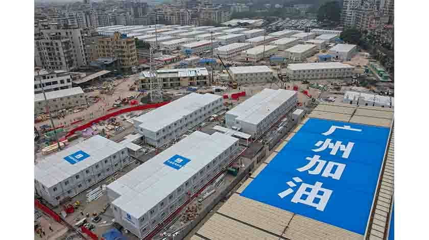 11月18日,廣東省廣州市,航拍建設中的白雲區應急隔離轉運點項目。(無人機照片) 中新社