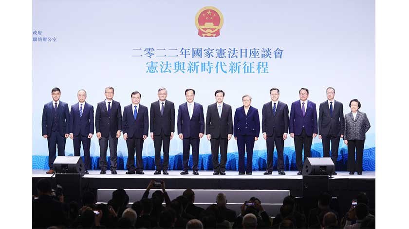 【香港中通社12月4日電】12月4日是國家憲法日。香港特區政府4日聯同香港中聯辦合辦2022年“國家憲法日”座談會,主題為“憲法與新時代新征程”。香港特區行政長官李家超在座談會上致辭時表示,在國家邁上成為全面建設社會主義現代化強國新征程這個關鍵時刻,我們必須堅定不移維護憲法、切實和全面準確貫徹落實憲法和基本法所保障的“一國兩制”,保持香港長期繁榮穩定。