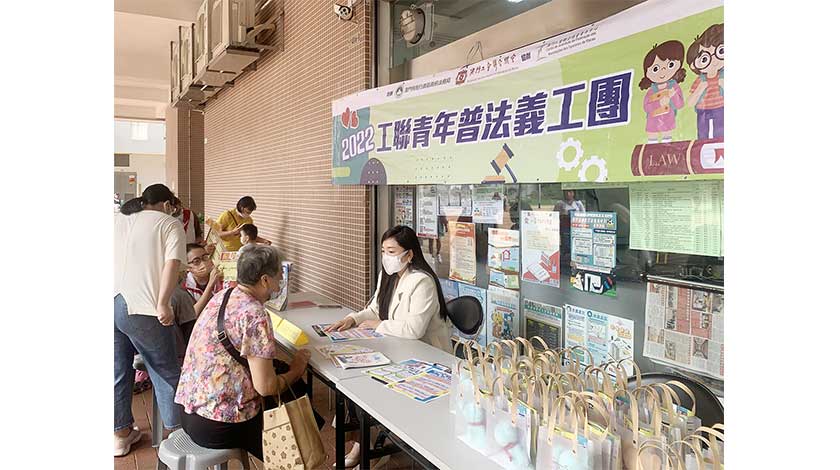 “2022工聯青年普法義工團”學員在過去半年通過一系列課程培訓後,第一次走到社區進行“您知咩嘢Law”普法宣傳,宣傳內容主要是圍繞居民日常生活較常接觸的法律,主要是及《勞動關係法》、《婚姻家庭法律》、《刑法典》等,例如僱員的休息休假權,女士有薪產假,最低工資,遺產繼承權等等。活動運用“快問快答”街頭問答的推廣方式,義工團學員向市民派發宣傳單同時又可以和市民互動。同場,有工聯粵港澳大灣區事務法律顧問程嘉雯律師駐場進行法律諮詢,有長者就立“平安紙”、樓宇繼承權進行諮詢。諮詢的長者表示,因為自己行動不便,活動範圍主要在住所附近,聽到街坊宣傳有免費法律諮詢,所以特意來排隊諮詢,駐場律師相當專業及耐性的解答,非常感謝律師及工作人員。另外,還有市民查詢解僱賠償,離婚分產、業權繼承權等等問題。身兼課程培訓導師的程嘉雯表示,市民關心的法律主要都是與生活相關,很多情況都可以通過調解或到政府部門去處理。義工團在社區與市民接觸,多角度為他們解讀法律法規,可以增強義工團凝聚力,以及深化義工團對學課程的認識,增強其積極性、主動性,為法律推廣貢獻更大力量。