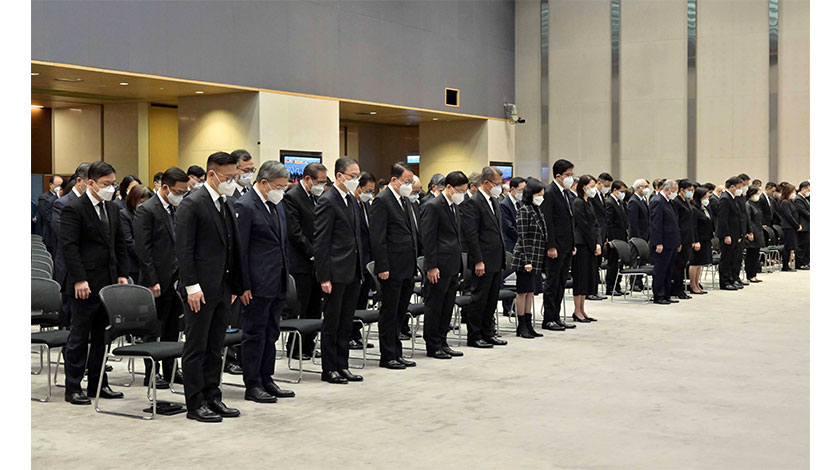 香港特區行政長官李家超帶領特區政府司局長、行政會議成員在特區政府總部收看了追悼大會直播並進行默哀。香港特區立法會議員、香港特區司法機構人員等也在追悼大會開始時同時肅立默哀3分鐘。