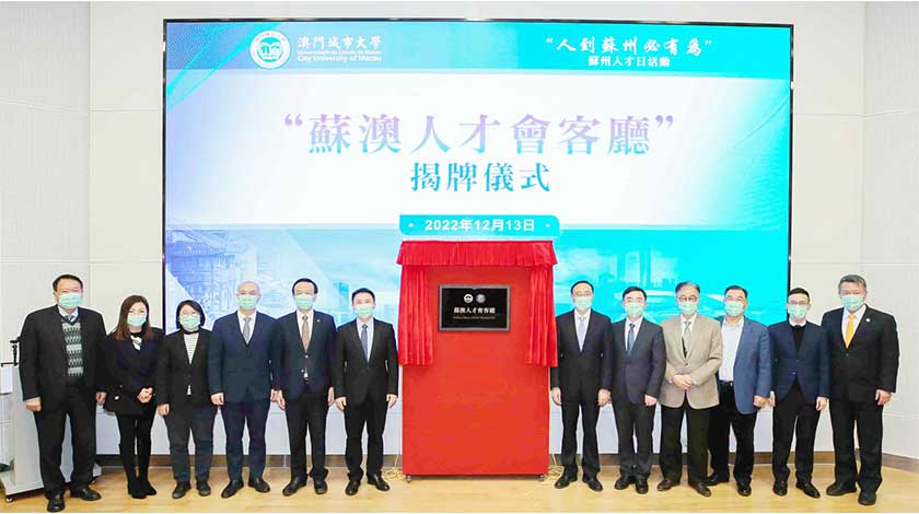 【特訊】由澳門城市大學、蘇州海外聯誼會、蘇州市人才工作領導小組辦公室及常熟海外聯誼會聯合主辦,澳門蘇州聯誼會協辦的“人到蘇州必有為”蘇州人才日活動昨(13)日上午11時於城大氹仔校區開幕,活動包括“谷‧姑蘇社”澳門城市大學青年創業實踐基地揭牌儀式、城大與常熟市共建“海外離岸創新中心”協議簽署儀式及“蘇澳人才會客廳”揭牌儀式。