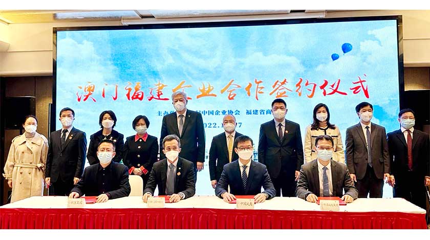 【特訊】2022年12月16日,澳門中國企業協會舉辦澳門航空“澳門-福州”首航活動,旨在促進閩澳合作,並于12月17日在福州與福建省商務廳聯合舉辦“澳門福建企業簽約儀式”。在澳門中國企業協會會長傅建國,澳門中聯辦經濟部部長劉德成,福建省商務廳副廳長、一級巡視員黃娜恩,及各方領導的共同見證下,澳門國際銀行股份有限公司與中國武夷實業股份有限公司、福州新區開發投資集團有限公司、平潭綜合實驗區城市發展集團有限公司簽訂跨境金融合作協議。