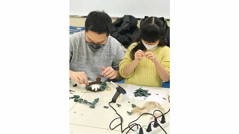 適逢年末,聖誕節即將來臨,總結禮當天,該中心同時安排數個聖誕節親子手作坊供本澳親子參與,當中包括:聖誕花環手作坊,聖誕黏土屋手作坊,聖誕花束手作坊及聖誕流體鹿手作坊,為疏通人流,工作員特意安排參加者分流及分室進行活動,活動過程中,親子互相協作和發揮創意,最終完成充滿聖誕節氣氛之手作品,共享歡樂時光。中心主任洪偉東表示,是次活動能提高本澳親子家庭對親職教育之認識度,同時此類節慶性親子活動能創造親子間共有的回憶,並在活動過程中加深對彼此的了解,加強參加者親子間的互動和交流,有效助其親子關係正向發展,同時享受節日之樂。