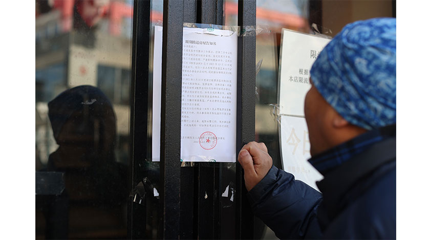 1月31日,市民查看三里屯一酒吧張貼的《限期騰退房屋告知書》。據瞭解,北京三里屯酒吧街即將啟動建築物隱患消除工程,對酒吧街商戶進行騰退。 中新社