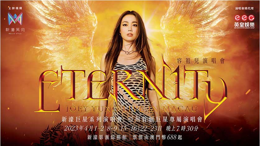 新濠影滙自開幕以來,已迎來多位國際巨星落戶舉辦個人演唱會,讓新濠影滙綜藝館成為世界頂級歌手之表演聖地。是次《新濠巨星系列演唱會》,將會是亞洲首個雲集華語樂壇巨星之駐唱演出,每位天王天后將編制及創作獨一無二的演唱會內容,為亞洲帶來新濠限定的頂級娛樂鉅獻。新濠一直貫徹推動澳門多元發展的堅定決心,將前所未有之駐唱演出文化帶到澳門,為所有旅客以及市民迎來極致娛樂體驗。首位登場為《新濠巨星系列演唱會》獻唱的是樂壇天之驕女容祖兒,曾於世界各地舉辦過逾150場巡迴演唱會的她,將率先於4月1日起連續四個週末於澳門新濠影滙綜藝館演出共八場《新濠巨星系列容祖兒Eternity演唱會》。是次演唱會,祖兒會把多年來廣受歡迎的粵語及國語金曲,帶到澳門新濠影滙的舞台;另外,她亦會重新演繹多首在綜藝節目上讓大家驚艷的歌曲,為樂迷打造一個勁歌熱舞、極盡視聽之娛、空前未見的音樂盛宴,絕對不容錯失。