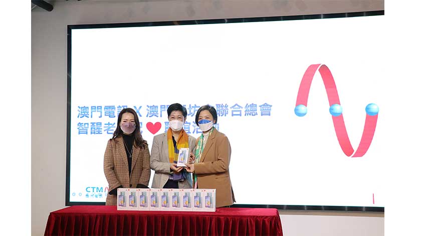 手機捐贈儀式於當日下午,假澳門街坊會聯合總會社區服務大樓迎聚廊舉行,澳門電訊商務副總裁湛寶儀及企業傳訊總監陳靜儀向街坊總會捐贈10部5G手機及通訊服務,由該會會長吳小麗代表接收。湛寶儀表示,澳門街坊會聯合總會一直堅持「關注民生、服務社群」辦會方針,致力參與社會事務,為居民辦實事謀福祉。作為該會的長期友好合作伙伴,多年來,澳門電訊全力支持街總透過科技開展社會服務工作。