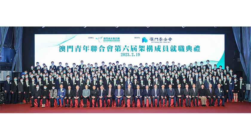【特訊】澳門青年聯合會第六屆架構成員就職典禮於 2 月 19 日下午假澳門漁人碼頭會展中心舉行。行政長官賀一誠,全國政協副主席何厚鏵,中聯辦主任鄭新聰,外交公署特派員劉顯法,立法會主席高開賢,中聯辦辦公廳主任宋立洪,中聯辦教青部部長李雪飛,全國青聯副秘書長張朝暉,教青局代局長黃嘉祺,基金會行政委員會副主席鍾怡,澳門青聯發起人廖澤雲、崔世昌、崔世平,永遠會長馬志毅、莫志偉,全國青聯、內地省市青聯代表以及社會各界嘉賓出席。