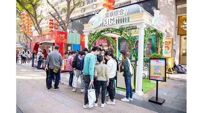 【特訊】澳娛綜合度假股份有限公司(「澳娛綜合」)積極參與由澳門特別行政區政府旅遊局舉辦的「感受澳門•樂無限」大灣區巡迴路展,再度向大灣區居民展現澳門「旅遊+」的多元魅力。巡迴路展日前在廣州重啟,及後將分別前往江門、惠州、深圳、東莞及佛山等多個大灣區城市。路展以別具特色的大篷車化身主舞台作為賣點,融入了特色體驗、互動遊戲,以及各類精彩表演,並配合線下及線上宣傳,多方位釋放澳門城市魅力。澳娛綜合的展位通過融合了東方葡韻文化的設計、透過媒體互動、優惠及紀念品放送等形式,吸引當地民眾來澳踏春,開啟遊澳必「京」之旅,進一步助力澳門經濟復甦。