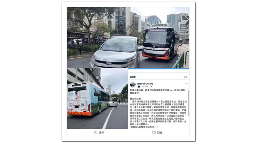 事件經多日發酵後,警方昨日終開腔回應。治安警表示,上述交通事故發生本月十日中午一時許,地點為青洲上街的巴士站,交通警員接報到場處理,初步證實是巴士當時上客後正起步,與一部正好從右車道轉向左車道的七人車發生踫撞。調查顯示,巴士懷疑再起步時沒有打指揮燈,而七人車則涉嫌越過實線,警方已分別對兩名司機作出相應檢控。