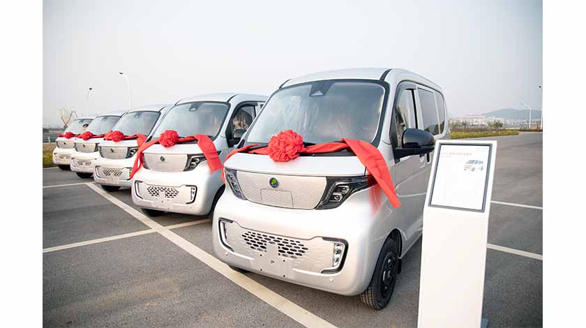 2月28日,廣西柳州五菱新能源汽車有限公司生產的新能源純電動物流車首批產品G050,交付日本ASF株式會社。圖為此次交付的新能源純電動物流車G050。 中新社