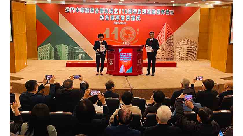 【本報訊】郵電局與澳門中華總商會,昨假中總禮堂舉行 “澳門中華總商會一百一十周年”新郵品首發儀式,藉該套紀念郵品,慶祝及紀念中總成立一百一十周年,彰表其社會貢獻。