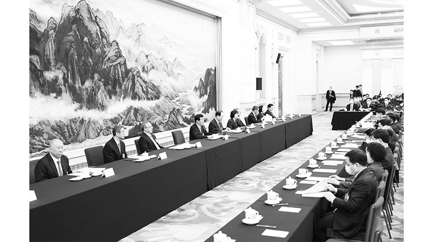 3月3日,政協第十四屆全國委員會第一次會議主席團第一次會議在北京人民大會堂舉行。主席團會議主持人王滬寧主持會議。新華社