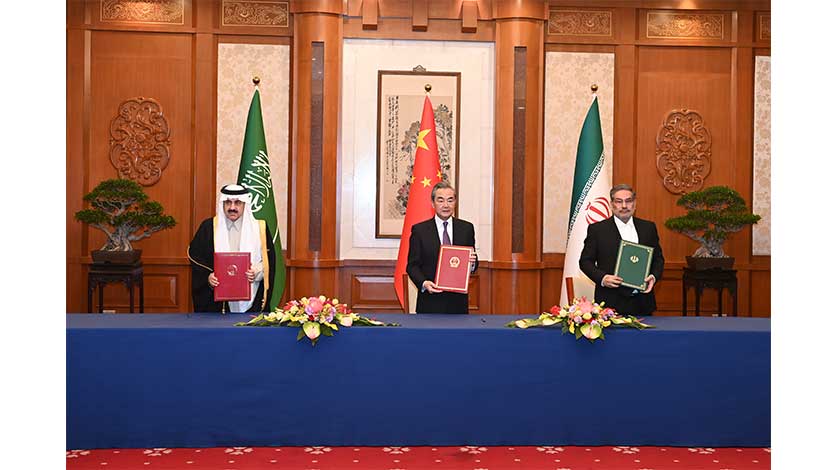 同日,沙伊達成北京協議,中沙伊三方簽署並發表聯合聲明,宣佈沙伊雙方同意恢復外交關係,強調三方將共同努力,維護國際關係基本準則,促進國際地區和平與安全。