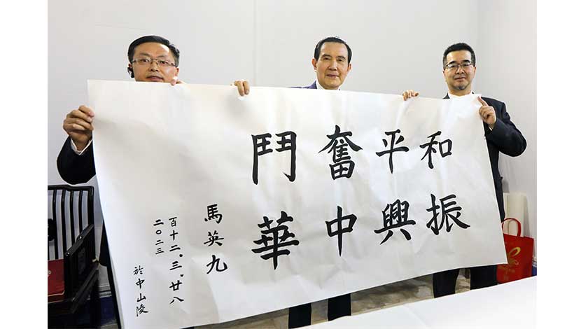 在祭堂耳房,馬英九題寫“和平奮鬥 振興中華”,以志紀念。