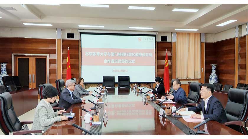 【特訊】為進一步加強澳門特別行政區政府體育局與北京體育大學之間的聯繫,擴大雙方在體育人員培訓方面的合作。體育局局長潘永權與北京體育大學校長張劍於3月29日在北京體育大學簽署《北京體育大學與澳門特別行政區政府體育局合作備忘錄》。