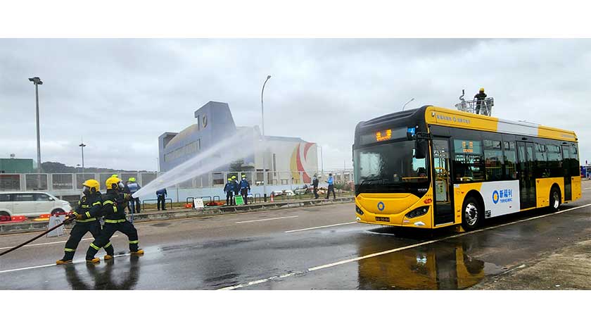 聯合演練於3月27日上午10時30分在路氹航空圓形地進行,模擬兩台增程式電動巴士在行駛期間出現異常情況,電池倉溫度異常升高,車長隨即將車輛安全停靠路邊、熄匙、關閉電源總掣並緊急疏散乘客,同時按照既定機制通報控制中心、消防局、治安警察局及交通事務局。警員到場即時疏散人群、維持交通秩序和實施安全措施;消防接報到場後,發現車頂的電池倉位置有煙霧冒出,隨即進行灑水降溫,及後由巴士公司安排拖車將肇事巴士拖回車場。