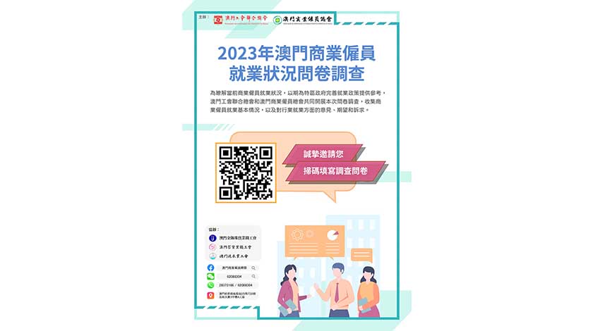 鄧錦富認為,為進一步了解行業工友的就業狀況和意見,澳門商業僱員總會和澳門工會聯合總會將開展《2023年澳門商業僱員就業狀況問卷調查》,內容包括薪資變化、消費支出、工作時間、工作壓力、接受培訓、受聘用外僱的影響以及對政府促進就業的期望等方面的情況,呼籲行業工友能夠積極參與和支持是次調查活動,歡迎透過掃碼或者點解鏈接進入網址作出填寫。調查結果將對外公佈並提交政府,以助有關當局制定出更具針對性的就業支援政策和措施。