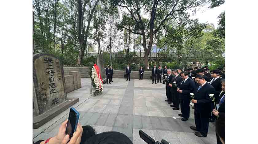 4月4日,中國國民黨前主席馬英九一行前往重慶梅花山麓的張自忠將軍墓憑吊。 中新社