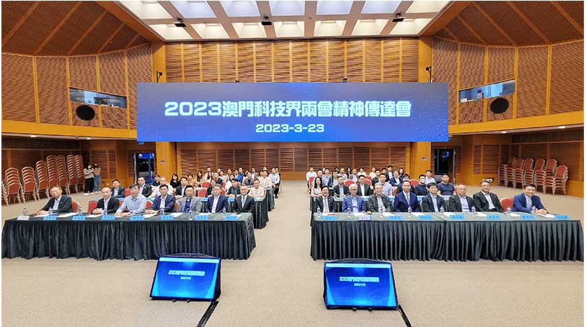 【特訊】3月23日,澳門科學技術協進會主辦、澳門科學館協辦“2023澳門科技界兩會精神傳達會”,由澳區全國人大代表、澳門科協會長崔世平以及澳區全國政協委員、中國銀行澳門分行副行長葉兆佳作分享匯報,並邀請澳門中聯辦經濟部副部長黃聖彪、澳門科學技術發展基金行政委員會主席陳允煕、經濟及科技發展局科技廳廳長謝永強等嘉賓出席。傳達會於澳門科學館會議中心會議廳舉行,當日80多位科技團體及科技企業代表出席,關心國家發展政策和科技創新趨勢,活動由澳門科協理事長邵漢彬主持。葉兆佳首先回顧十四屆全國人大會議上的政府工作報告,指出2023年中國經濟社會發展目標和政府工作重點任務,並詳細分析今年中國經濟五大關鍵詞:穩增長、優政策、擴內需、固產業、化風險。同時闡述中國全過程人民民主的優越性,向澳門科技界傳達國家發展長期向好的信心。崔世平向澳門科技界分享了澳門區人大代表團的與會經歷、介紹了新一屆國家領導班子的組成、摘要了十四屆全國人大會議的工作報告,指出國家重點支持弱勢減負工作、繼續加強科技創新投入、持續完善法律法規體系、優化調整金融監管機構。崔世平在人大會議中提出完善橫琴粵澳深度合作區交通配套,促進澳門融入國家發展大局,支持澳門打造科技方面“一中心、一平台、一基地”,利用澳門中葡平台優勢,促進澳門銀行業的中葡貿易平台作用等建議。