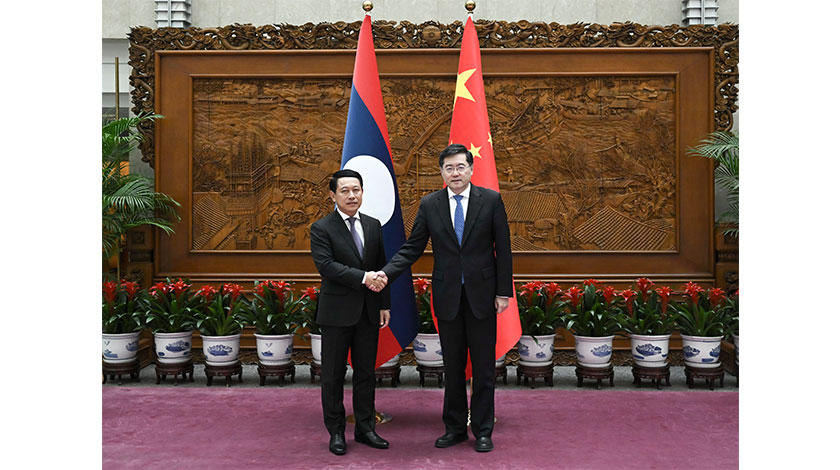 4月17日,國務委員兼外長秦剛在北京同訪華的老撾副總理兼外長沙倫賽舉行會談。 (新華社)