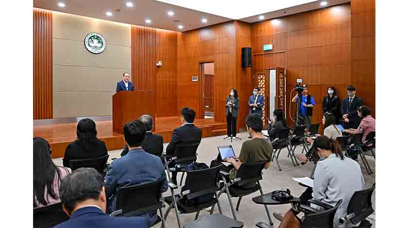 行政長官賀一誠昨晚啟程訪問葡萄牙、盧森堡及比利時,前往香港國際機場前在港珠澳大橋澳門口岸新聞發布室會見記者。