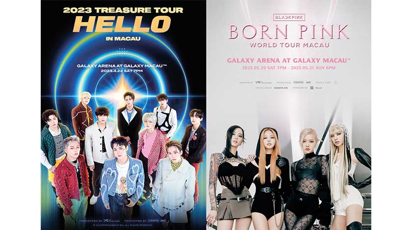 風靡全球的韓國頂尖男、女子流行音樂組合TREASURE及BLACKPINK將親臨澳門,分別於4月22日以及於5月20日至21日,在澳門以至亞洲最大室內綜藝表演場館之一、可容納16000名觀眾的銀河綜藝館舉辦「2023 TREASURE TOUR [HELLO] IN MACAU」世界巡迴演唱會澳門站,以及「BLACKPINK WORLD TOUR [BORN PINK] MACAU」世界巡迴演唱會澳門站,展現其非凡歌唱造詣及舞蹈實力,配合銀河綜藝館的世界級娛樂表演設備,定將為來自不同地區的觀眾帶來前所未有的娛樂表演觀賞體驗,助力提升澳門作為國際休閒度假旅遊目的地的知名度。