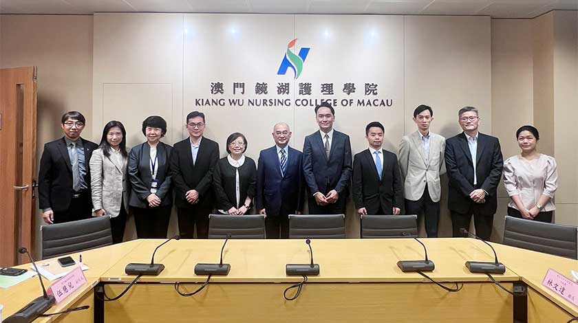 【特訊】教育及青年發展局局長龔志明、副局長丁少雄等一行於4月13日到訪澳門鏡湖護理學院,獲校董會主席劉永誠、院長尹一橋、副院長邢志紅及伍慧兒等熱情接待,雙方就人才培養、課程運作、素質保證、校園設施等方面進行討論與交流。