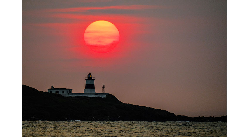 台灣新北市富貴角燈塔懸日時間從即日起一直到5月15日止,一年只有這段期間可以欣賞浪漫美景。台灣最北端的燈塔-富貴角燈塔在此時會與懸日美景難得一起入鏡,吸引民眾欣賞美景及攝影愛好者前往補捉美景,一旦錯過使要要再等一年。(香港中通社)