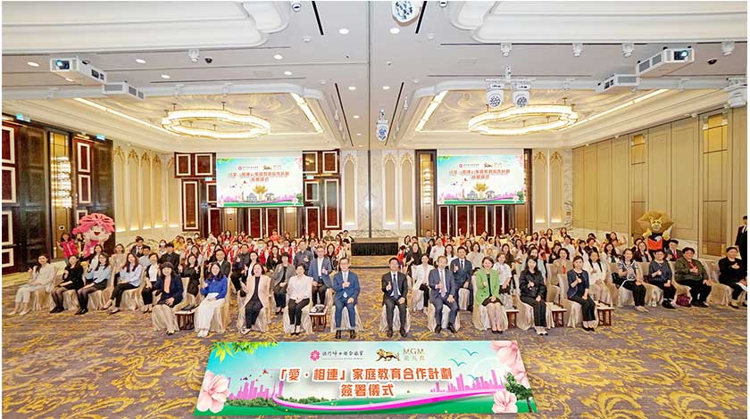 「『愛‧相連』家庭教育合作計劃」的簽署儀式於當日假美獅美高梅之宴會廳舉行,出席的主禮嘉賓包括:中央人民政府駐澳門特別行政區聯絡辦公室社會工作部姜振宇副部長;澳門特別行政區政府社會工作局鄧玉華副局長;婦聯總會劉金玲會長、袁小菱理事長;美高梅總裁、首席戰略及財務官馮小峰,以及美高梅人力資源執行副總裁余婉瑩。活動當天,美高梅舉行「家添愛」親子工作坊,讓來自婦聯學校及美高梅的家庭親手搭建帳篷,憑活動寄意,鼓勵家長及小朋友用心建立溫馨小家。