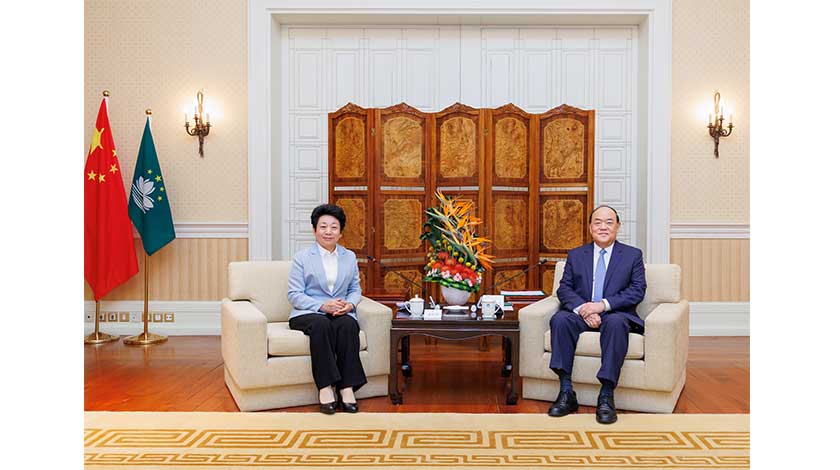 行政長官向黃莉新主席一行介紹了澳門、粵港澳大灣區及橫琴粵澳深度合作區的發展現況和前景。行政長官表示,澳門地方雖小但擁有自身獨特的優勢,充滿發展機遇。隨着今年初全面恢復內地與港澳人員往來後,訪澳旅客大量增加,澳門經濟穩步復甦。特區政府將持續在內地多個省市舉辦旅遊推廣活動,期望吸引更多內地旅客來澳旅遊及消費,同時,走向不同國家和地區,致力對外拓展客源市場,吸引國際旅客訪澳。