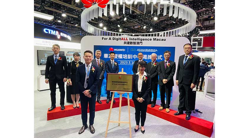 雙方昨日假威尼斯人金光會展中心C館Beyond EXPO 華為展臺DF02,舉辦認證級華為授權培訓中心揭牌儀式,由澳門生產力暨科技轉移中心理事長關治平及華為澳門總經理李英傑代表合作雙方主持揭牌。