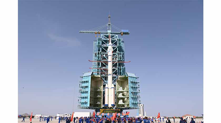 北京時間5月22日,甘肅酒泉,神舟十六號載人飛船與長征二號F遙十六運載火箭組合體已轉運至發射區。目前,發射場設施設備狀態良好,後續將開展發射前的各項功能檢查、聯合測試等工作,計劃近日擇機實施發射。圖為神舟十六號載人飛船與長征二號F遙十六運載火箭組合體轉運至發射塔架。 中新社