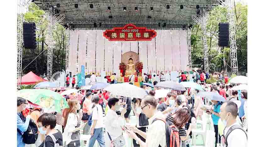 5月26日,“佛誕浴佛蔬食文化嘉年華2023”在港島維園舉行。當天,香港市民趁假日攜帶一家大小、親朋好友前來參加內容豐富的佛誕嘉年華,慶祝佛陀的誕生。透過沐浴太子及唱誦浴佛偈,了解浴佛的意義在於清淨自心,令心生喜悅。現場活動還包括人間佛教文化廊、蔬食饗宴、義賣攤位、趙州茶、釋迦族巡遊、緬懷星雲大師、綜合演藝節目等。其中,以創意與歡喜心烹調而成的蔬食饗宴,包含亞洲及台灣多款特色蔬食小吃,歡迎大眾以實際行動支持愛護地球,環保護生,共同推動蔬食文化。(香港中通社)