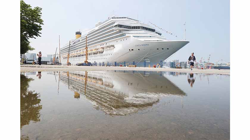 圖片新聞:意大利籍的歌詩達莎倫娜號(Costa Serena) 郵輪5月28日首航高雄舉辦見面會,宣布今年中秋佳節連假開始將以高雄為母港出發到日本琉球群島旅遊。“歌詩達莎倫娜”號有海上意大利移動城堡稱號,該郵輪重達11.45萬噸、載客數量高達3780人,向以浪漫歐式氛圍著稱,也是歷來訪台噸位最大的郵輪。(香港中通社)