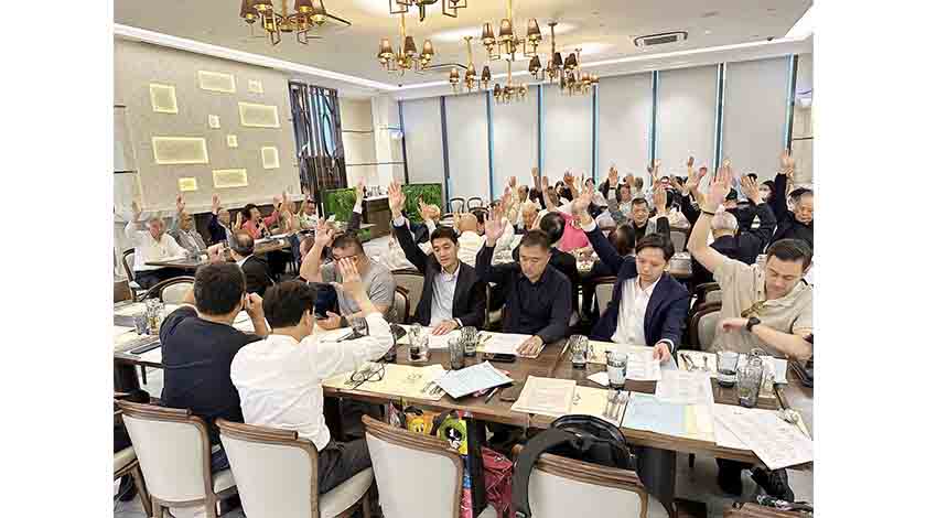 全體會員大會29日傍晚六時假九魚舫舉行,會長賀定一、副會長陸波、理事長黃國勝、監事長吳柱邦、副理事長劉永年、秘書長姚汝祥等,以及數十名理監事成員出席。大會由賀定一主持,黃國勝作理事會工作報告、劉永年作財務報告、吳柱邦作監事會意見,各項報告均獲會員代表一致通過。其後由陸波說明選舉事宜,並由全體會員通過了新一屆組織架構成員名單。