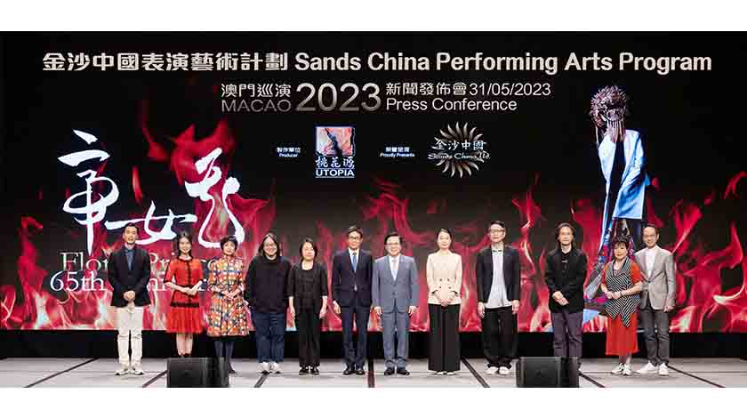 金沙中國有限公司總裁王英偉博士、澳門特別行政區政府旅遊局代局長程衛東、中央人民政府駐澳門特別行政區聯絡辦公室宣傳文化部處長白冰、澳門特別行政區政府文化局文娛活動處處長唐佩怡、《帝女花》劇目總監葉家寶及陳善之、導演吳國亮、演員代表李龍、南鳳、白雪紅、王志良及林穎施5月31日出席於澳門巴黎人宴會廳舉辦的《帝女花》65周年澳門巡演 2023新聞發佈會。