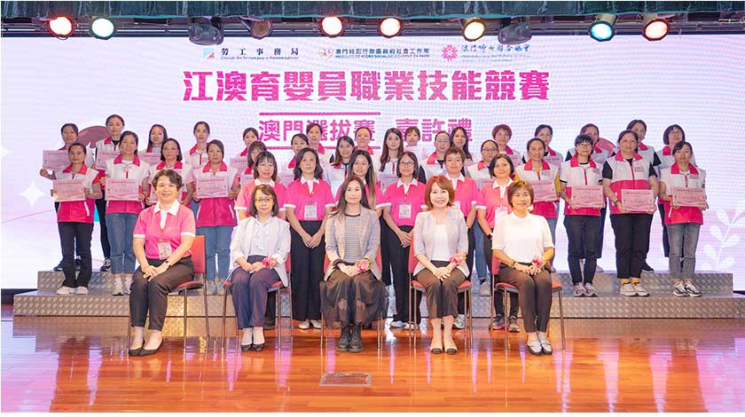 【特訊】由勞工事務局、社會工作局和婦聯總會合辦的首屆“江澳育嬰員職業技能競賽──澳門選拔賽”順利完成,合辦單位日前在婦聯綜合服務大樓何賢禮堂舉行嘉許禮,向三十名通過選拔賽的選手頒發嘉許狀。該競賽為澳門首次舉辦,各選手將於七月前往江門市參與決賽,爭取獎項及專業證書。