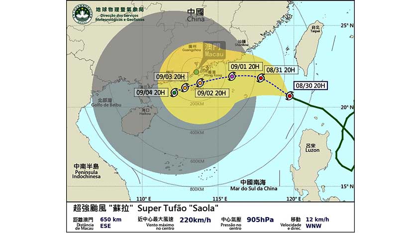氣象局昨指,「蘇拉」未來兩日大致移向廣東東部,隨後路徑或會較接近珠江口。預料未來兩三日「蘇拉」強度將維持強颱風或以上級別,由於「蘇拉」受內陸東北風影響,加上需視乎西北太平洋上另一熱帶氣旋「海葵」的發展情況,可能會與「蘇拉」出現相互作用,因此「蘇拉」的移動路徑及強度仍存在不確定性,且對本澳影響時間或會較長。