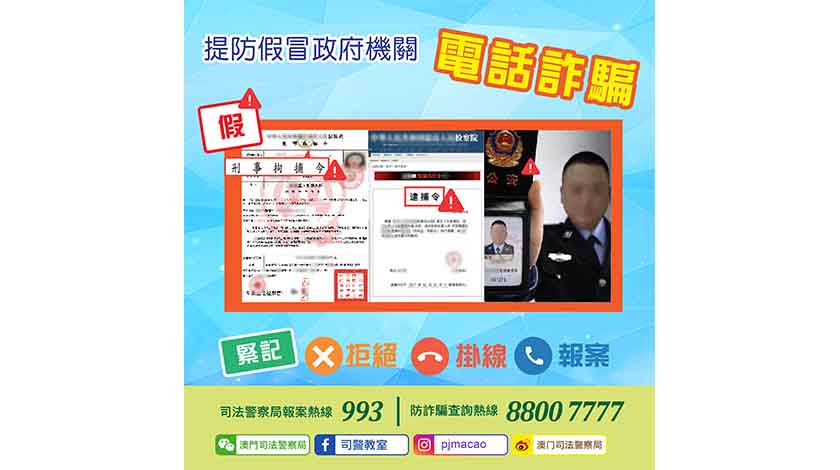 【本報訊】今年上半年警方接電信網絡詐騙增長顯著,其中,增幅較高的包括:「假冒政府機關人員」的電話騙案共錄得一百一十一宗,對比二零二二年及二零一九年的同期分別增加八十八及九十七宗。司長黃少澤指出,司法警察局於今年四月將轄下「詐騙聯防小組」升級為「反詐騙協調中心」。天眼方面,保安當局正展開第六階段的研究規劃,計劃於本澳不同區域增加六百八十支鏡頭。