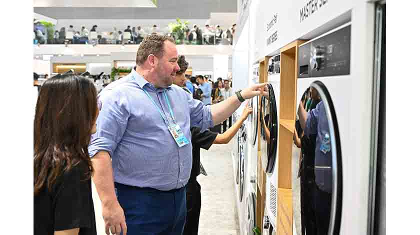 15日,廣東省廣州市,第134屆廣交會在廣交會展館開幕,一批“廣東智造”企業集中參展,向採購商展示廣東科技創新和先進製造的最新成果。圖為美的展位內,採購商挑選家用電器產品。 中新社